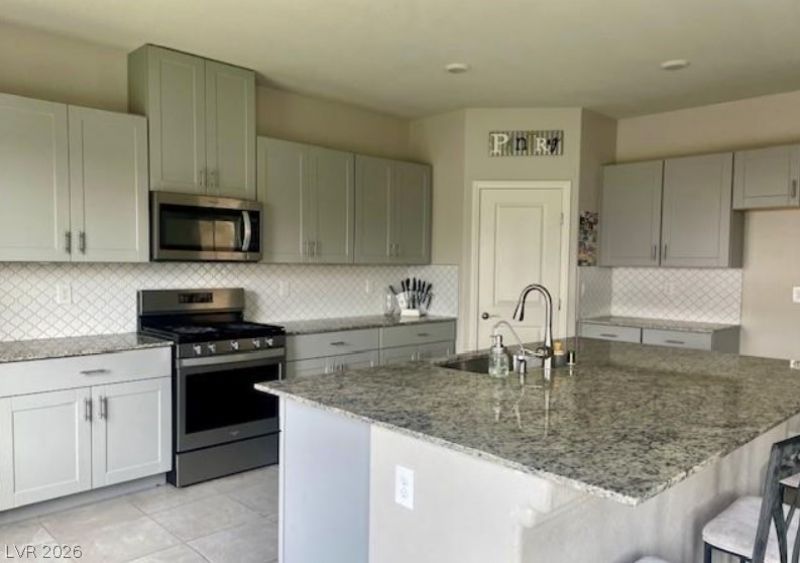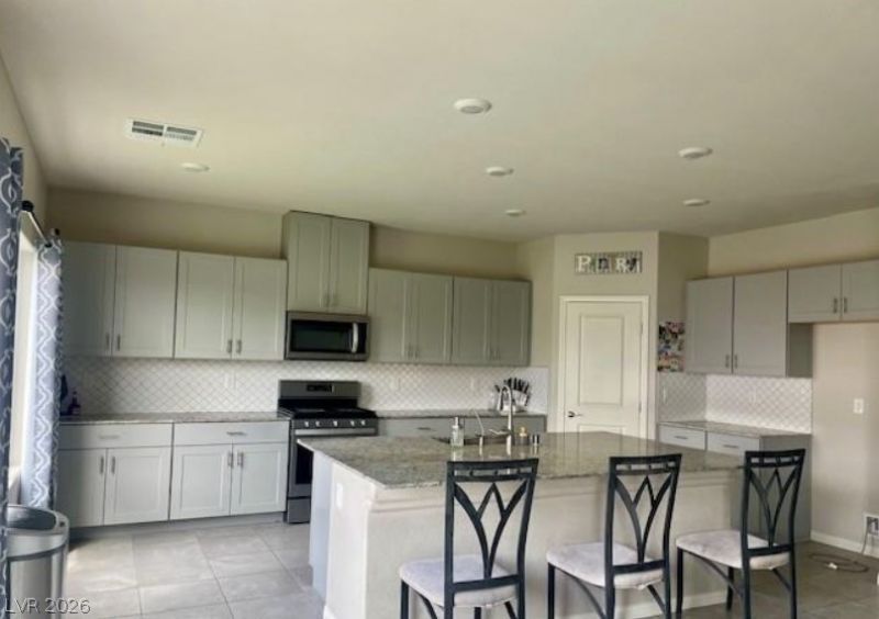 Walking distance to Craig Ranch Regional Park ¢ No rear neighbors ¢ Built 2021 ¢ Gated Sonora Ranch Community Two-story 4-bed + loft space in gated Sonora Ranch, North Las Vegas 89032 built by DR Horton. Open-concept main floor with abundant natural light & window coverings throughout. Spacious upstairs loft works as a home office, media room, or separate family room when company stays. Kitchen ready for hosting & weeknight cooking: granite counters, large island, backsplash, stainless appliances, recessed lighting, walk-in pantry, plus a large under-the-stairs storage space. All tile downstairs ? easy to clean, no carpet. Primary suite with walk-in closet; primary bath with dual sinks and walk-in shower. Four spacious bedrooms upstairs. Backyard backs to the Culinary Health Center parking lot ? no rear neighbors and added privacy. Synthetic grass and pavers, low maintenance ? no weekends spent mowing. Short drive to Aliante Casino, Costco & North Vista Hospital.